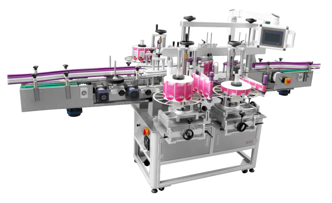 三張標(biāo)簽雙側(cè)面兼頂部貼標(biāo)機(jī)